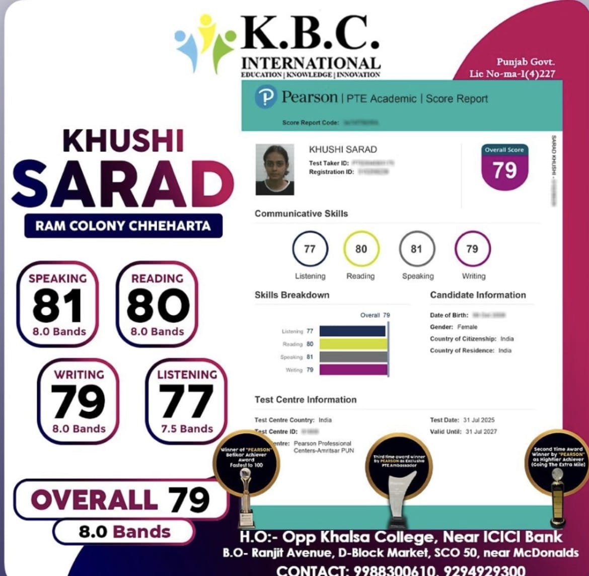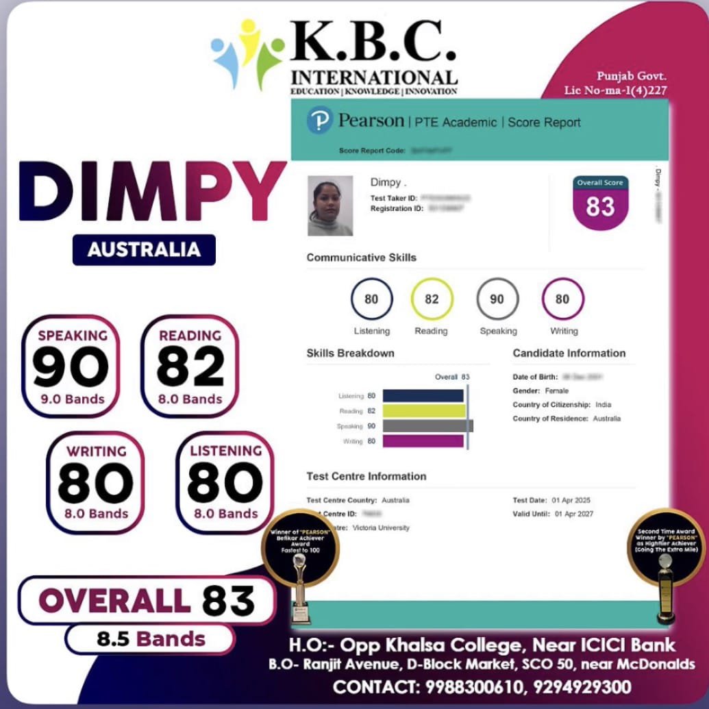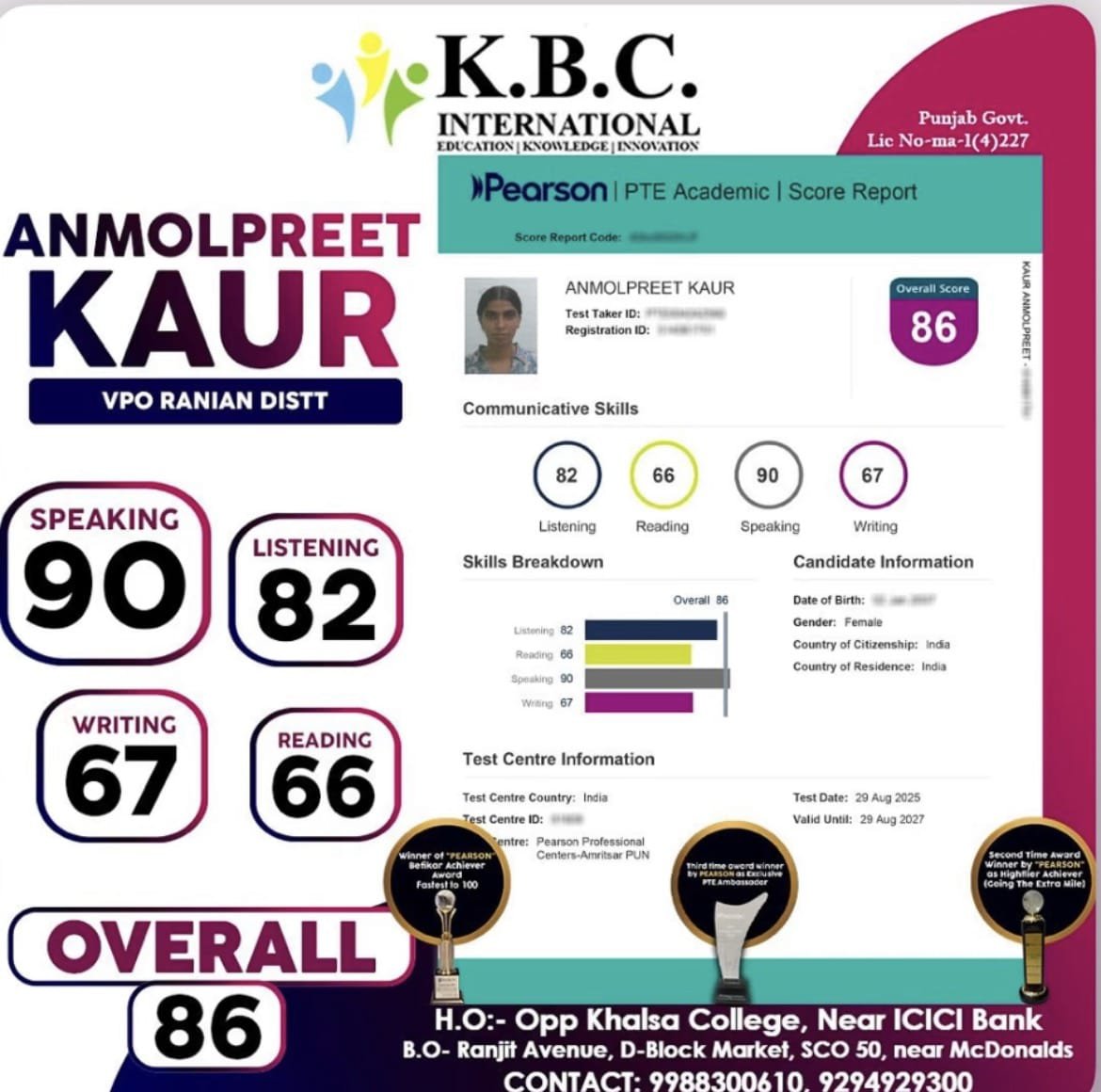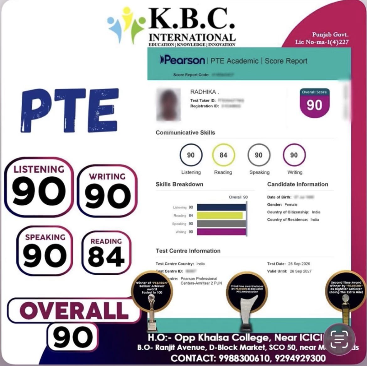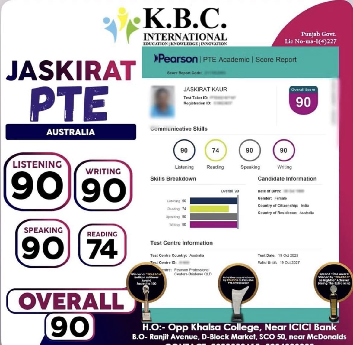At KBC International, success is not just a promise—it’s a proven track record. From achieving high scores in IELTS and PTE to securing visas and studying abroad, our students have consistently turned their dreams into reality. Explore our results, testimonials, and milestones that reflect our commitment to excellence.
