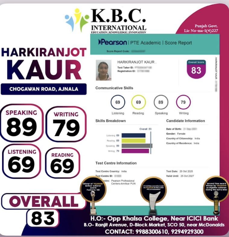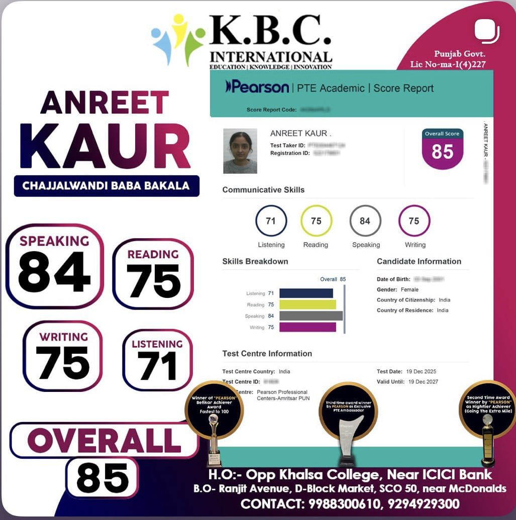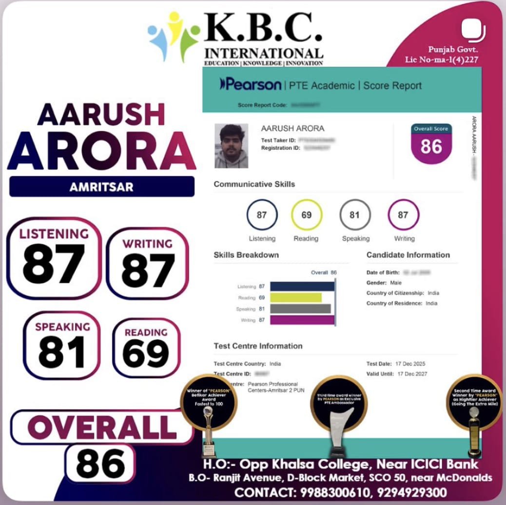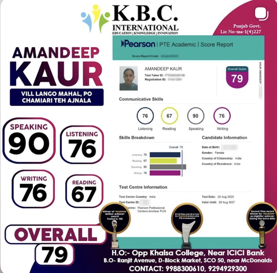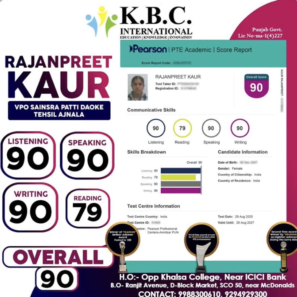 At KBC International, success is not just a promise—it’s a proven track record. From achieving high scores in IELTS and PTE to securing visas and studying abroad, our students have consistently turned their dreams into reality. Explore our results, testimonials, and milestones that reflect our commitment to excellence.